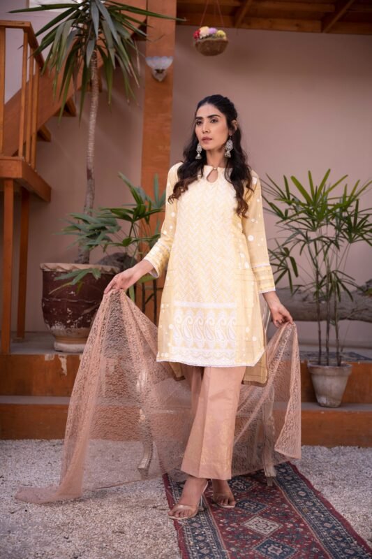 3-Pcs Embroidered Sunny Yellow Lawn...