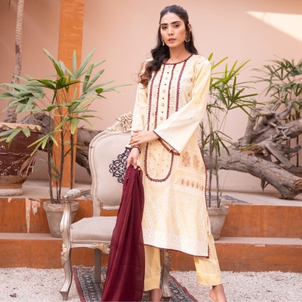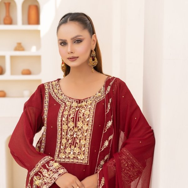 accessories for a refined evening style. Maroon instantly adds richness and depth to your outfit. It is one of the most loved colors in Pakistani formal wear, especially for winter and festive seasons. It compliments all skin tones and looks stunning in both embroidered and plain suits.
