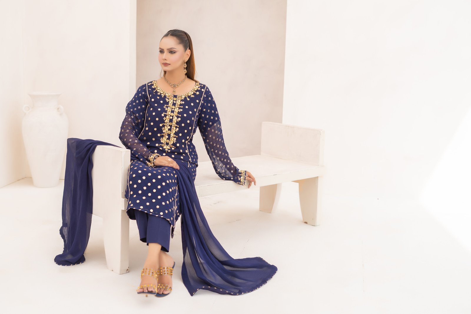 ⦁ Rich deep blue color paired with gold embellishments for a timeless, regal look.