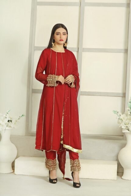 – The intricate work on the sleeves, trousers, and dupatta ensures you stand out at any event while staying true to classic Pakistani fashion trends.