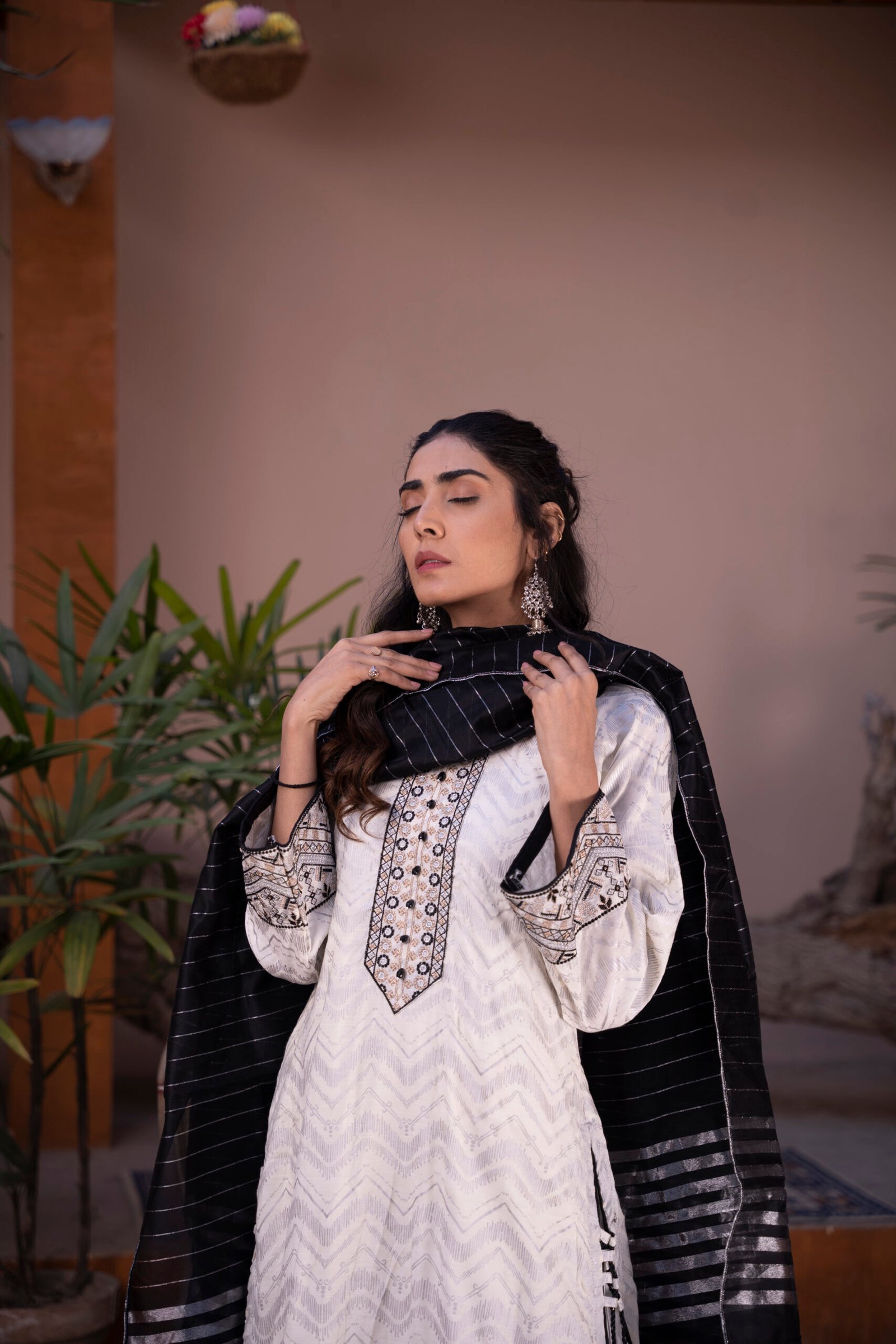 ⦁ Timeless off-white silver color gives the ensemble a versatile, classic appeal suitable for formal and festive events.