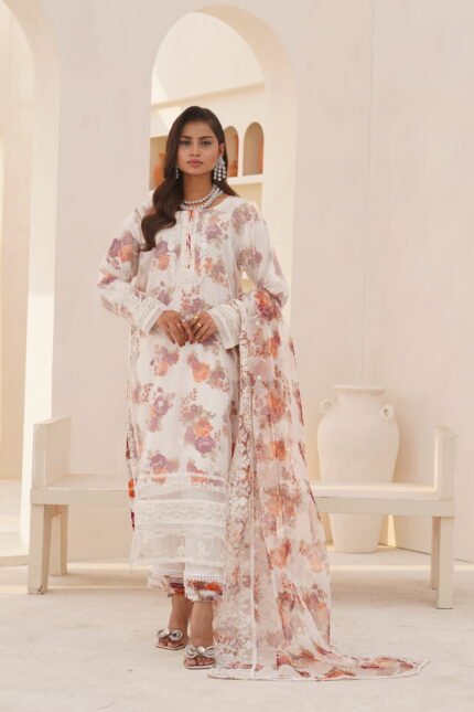 3-Pcs Elegant White Hand-Embroidered Organza Suit
