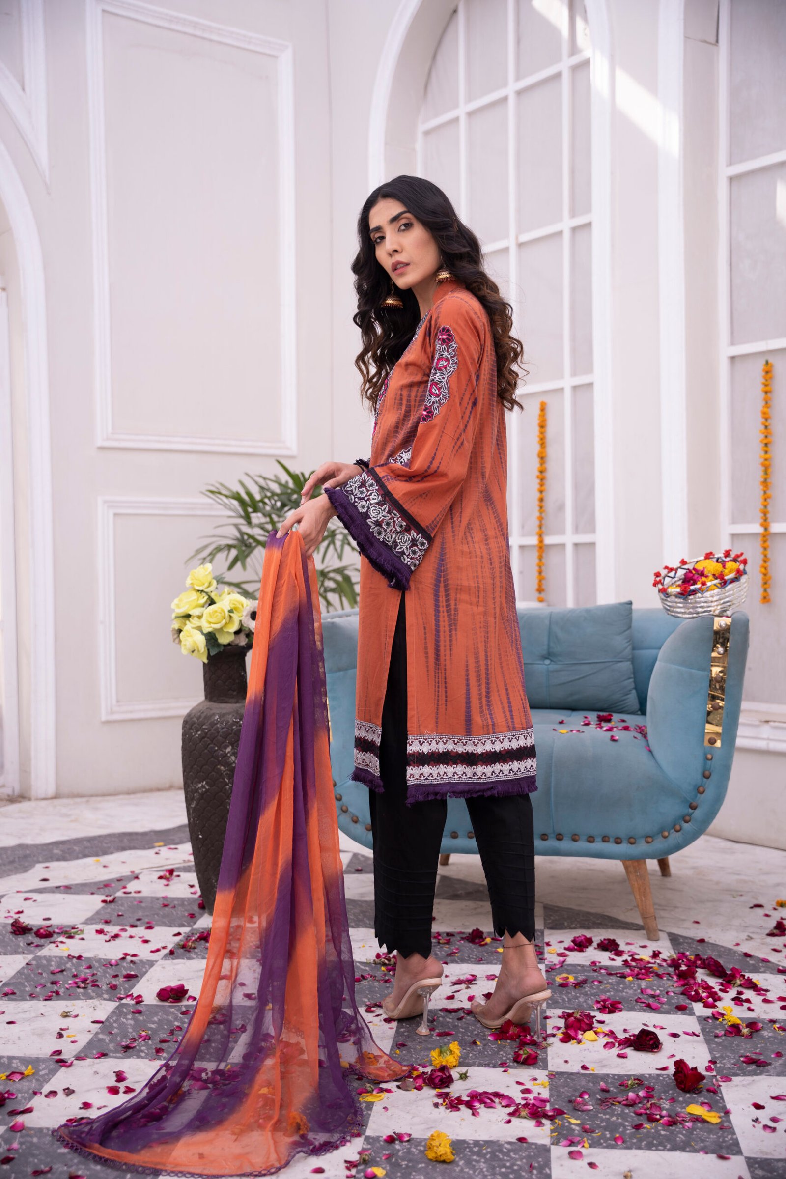 ⦁ Intricate embroidery enhances the beauty of the tie-and-dye pattern, adding elegance and charm.