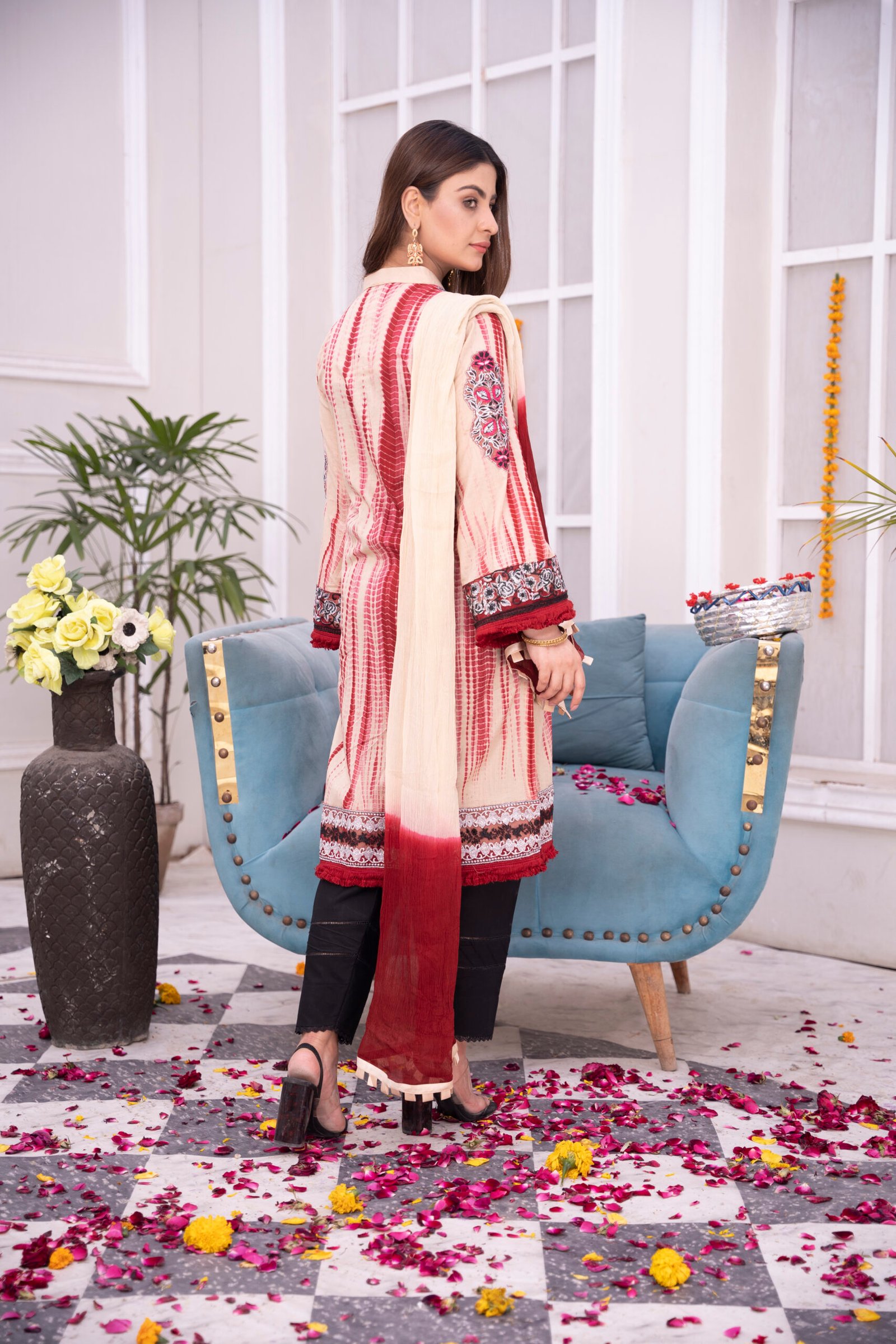 ⦁ Complete three-piece outfit includes a coordinated cambric trouser and chiffon dupatta.