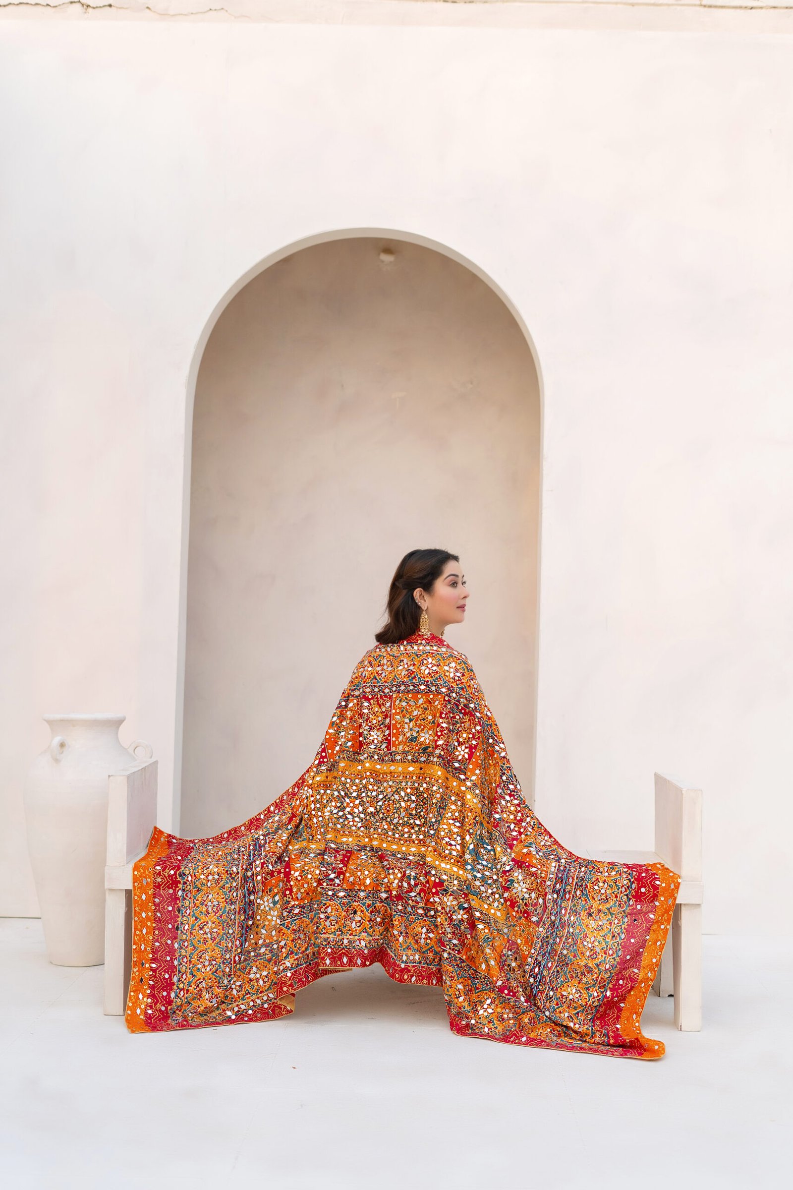 ⦁ Dry clean recommended to maintain color vibrancy, mirror work, and hand-painted detailing.