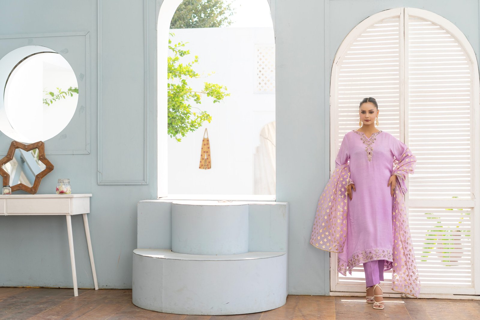 ⦁ Soft lilac color paired with gold accents creates a feminine, fresh, and timelessly elegant vibe.