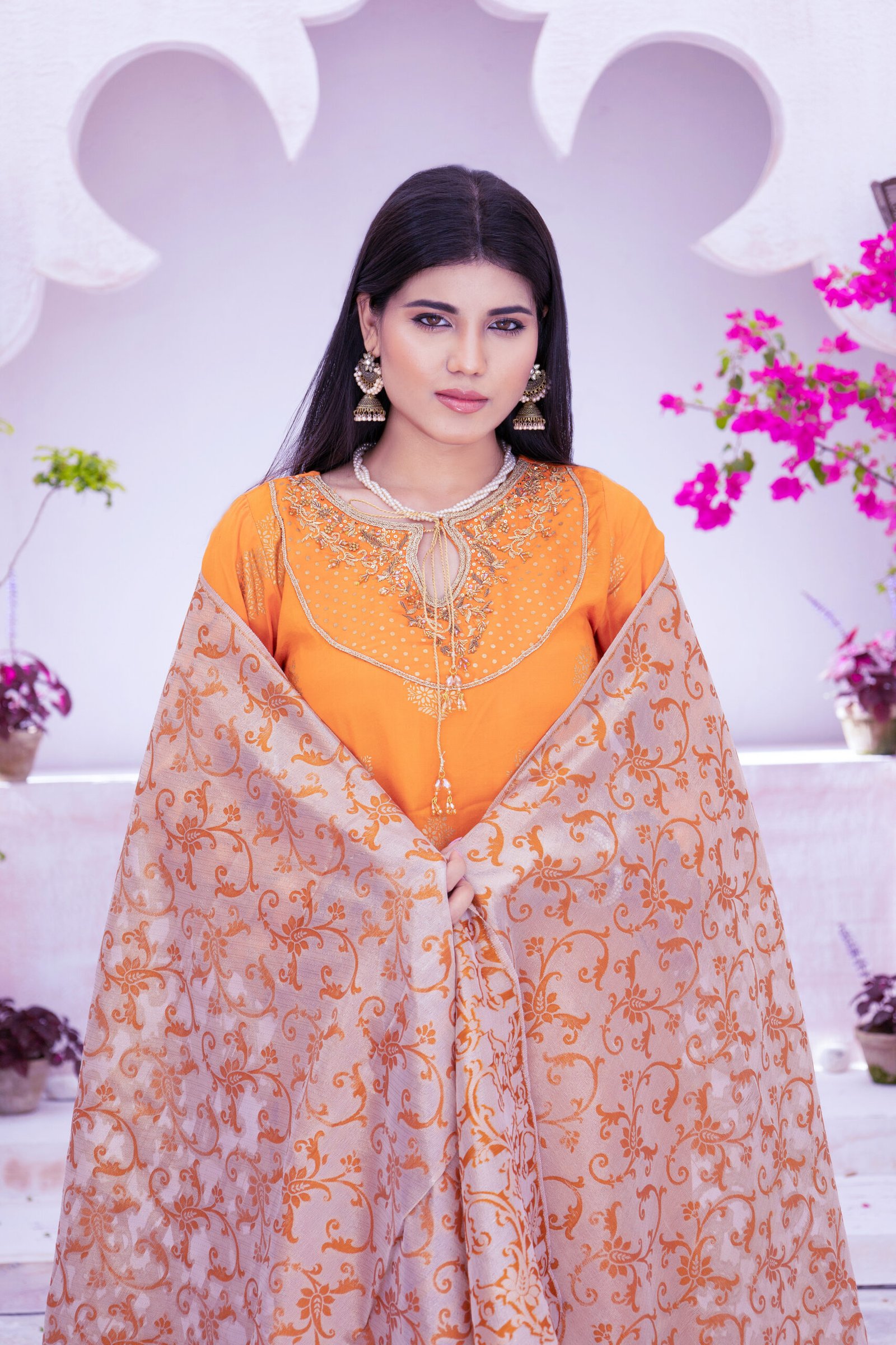 ⦁ Elegant Chunri Dupatta adds a traditional and luxurious touch, enhancing the ensemble’s visual appeal.